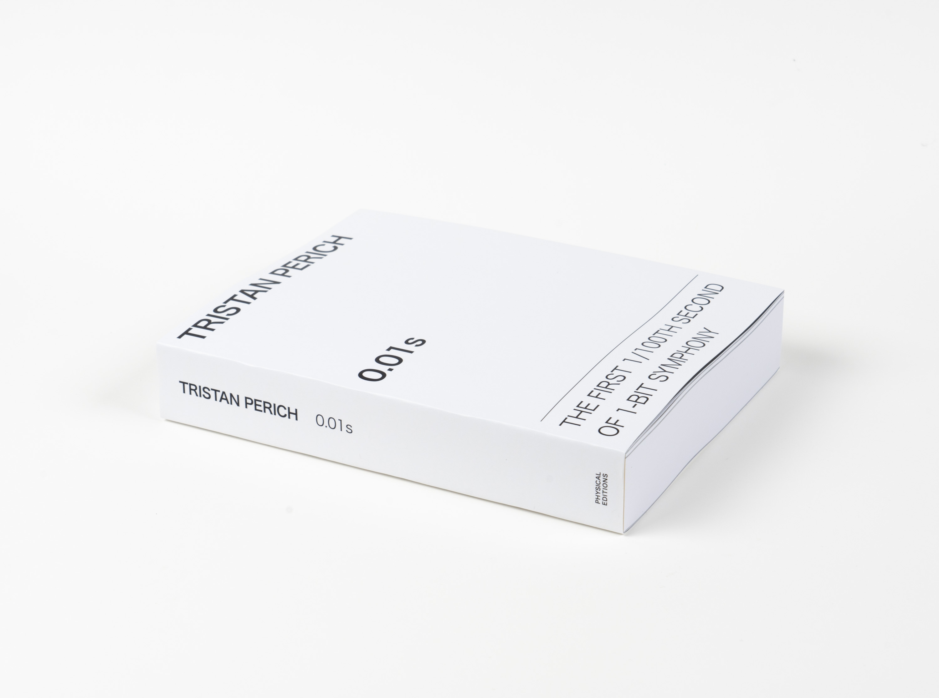 0.01s, Perich's companion to 1-Bit Symphony, is a voluminous synthesis of sound and computation in book form, giving a tangible mass to the code behinds its music. Digging even deeper into the basic operations of computation, 0.01s captures the inner workings of 1-Bit Symphony over the first hundredth of a second after it is switched on. In just 0.01 seconds, its processor executes 80,000 computational cycles, enough information to fill a 695-page book with austere tables of numbers and machine language, becoming a visual meditation on the internal mechanics of computation.