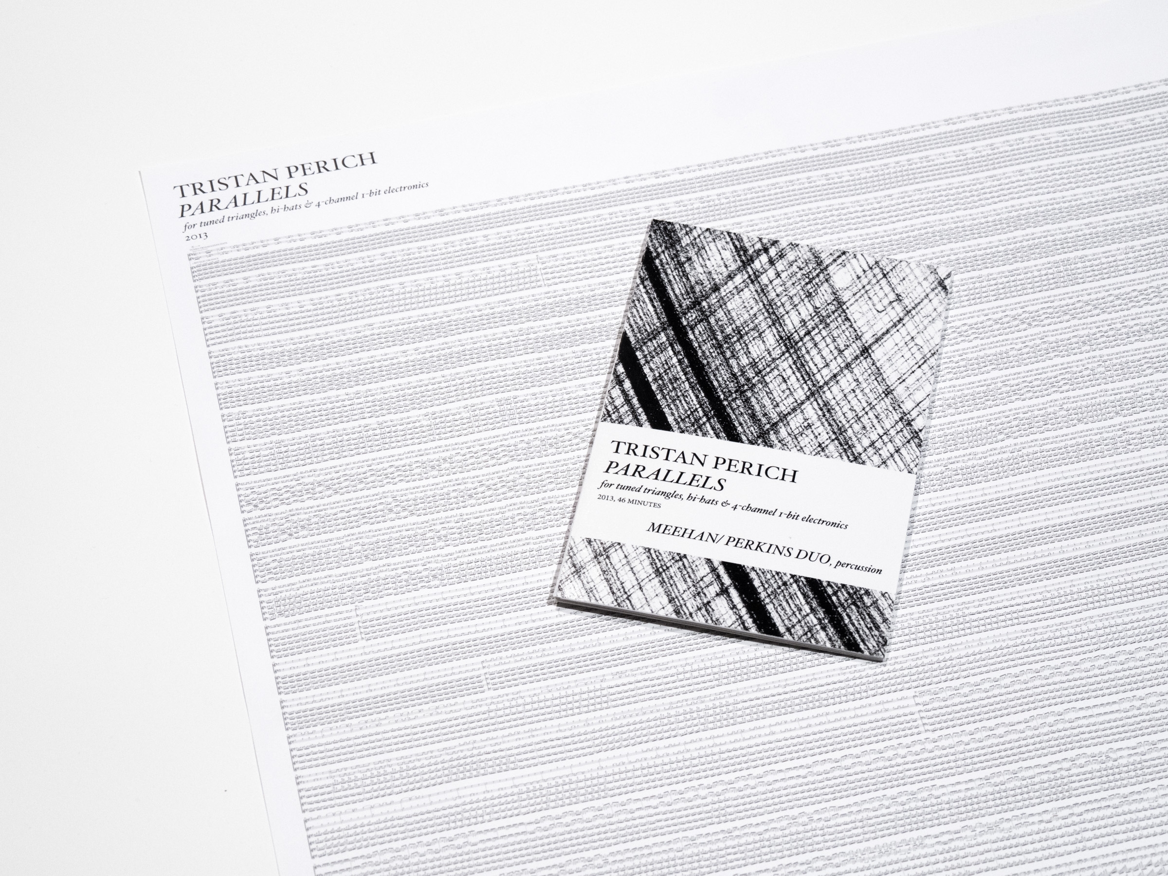 Tristan Perich's "Compositions," is a new series of recordings of his composed works for acoustic instrumentation with 1-bit electronics, released individually on CD in special packaging that includes their full musical scores printed in poster form. This year, four works will be released, scored as duos between percussion, winds, harpsichord, strings and his 1-bit electronics, featuring performances by Meehan/ Perkins Duo, Ensemble Signal, Daniel Walden and others.