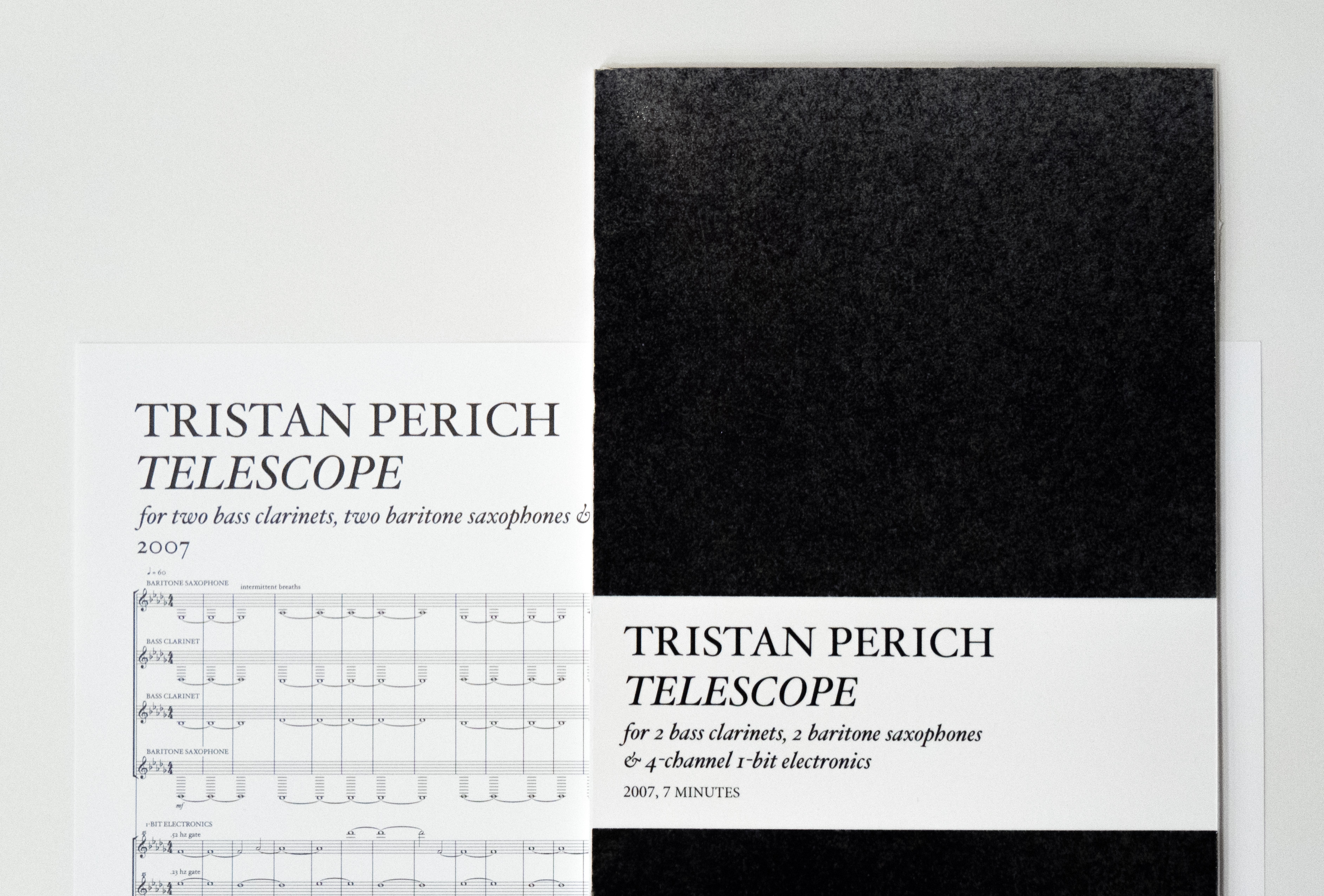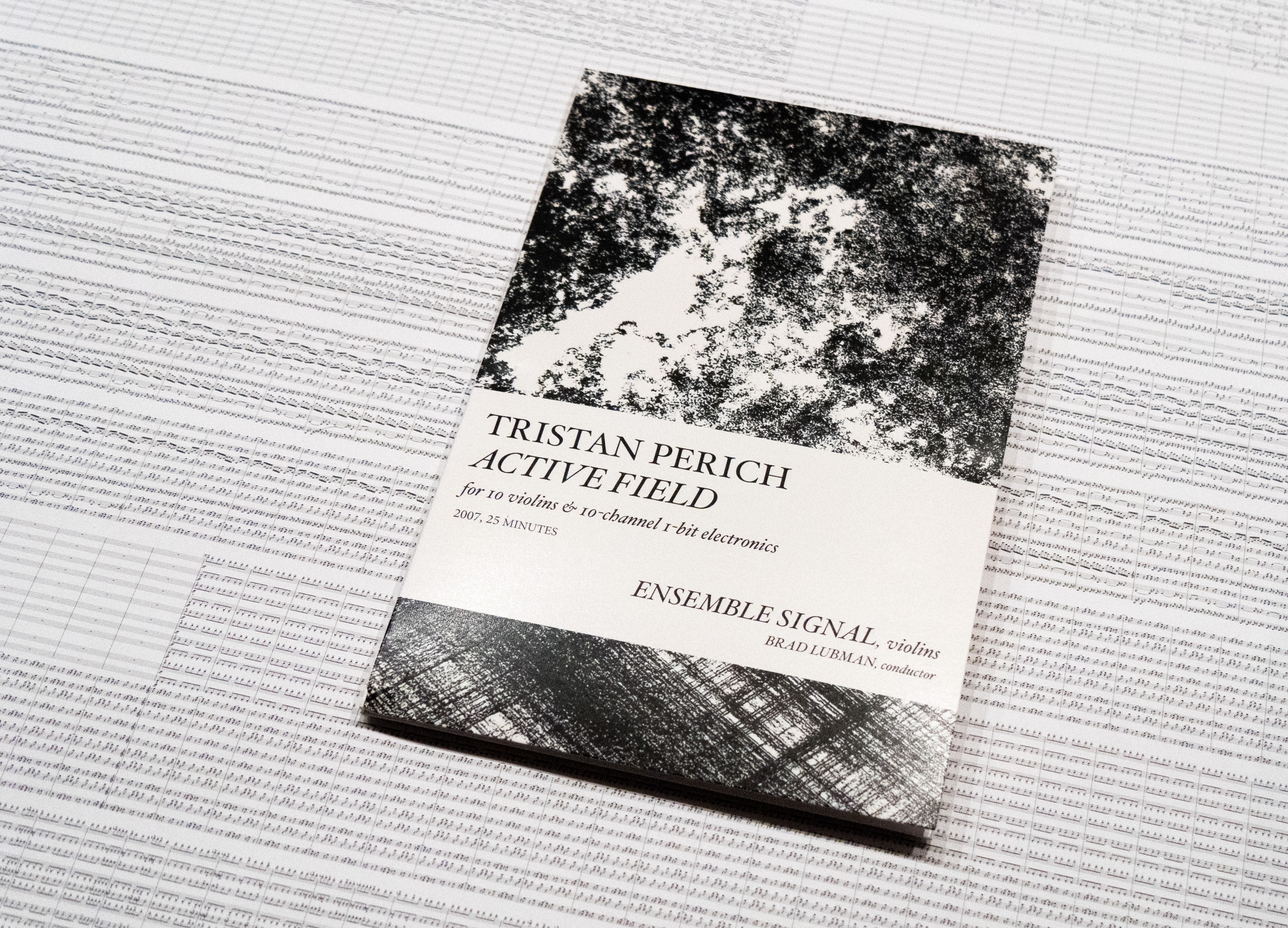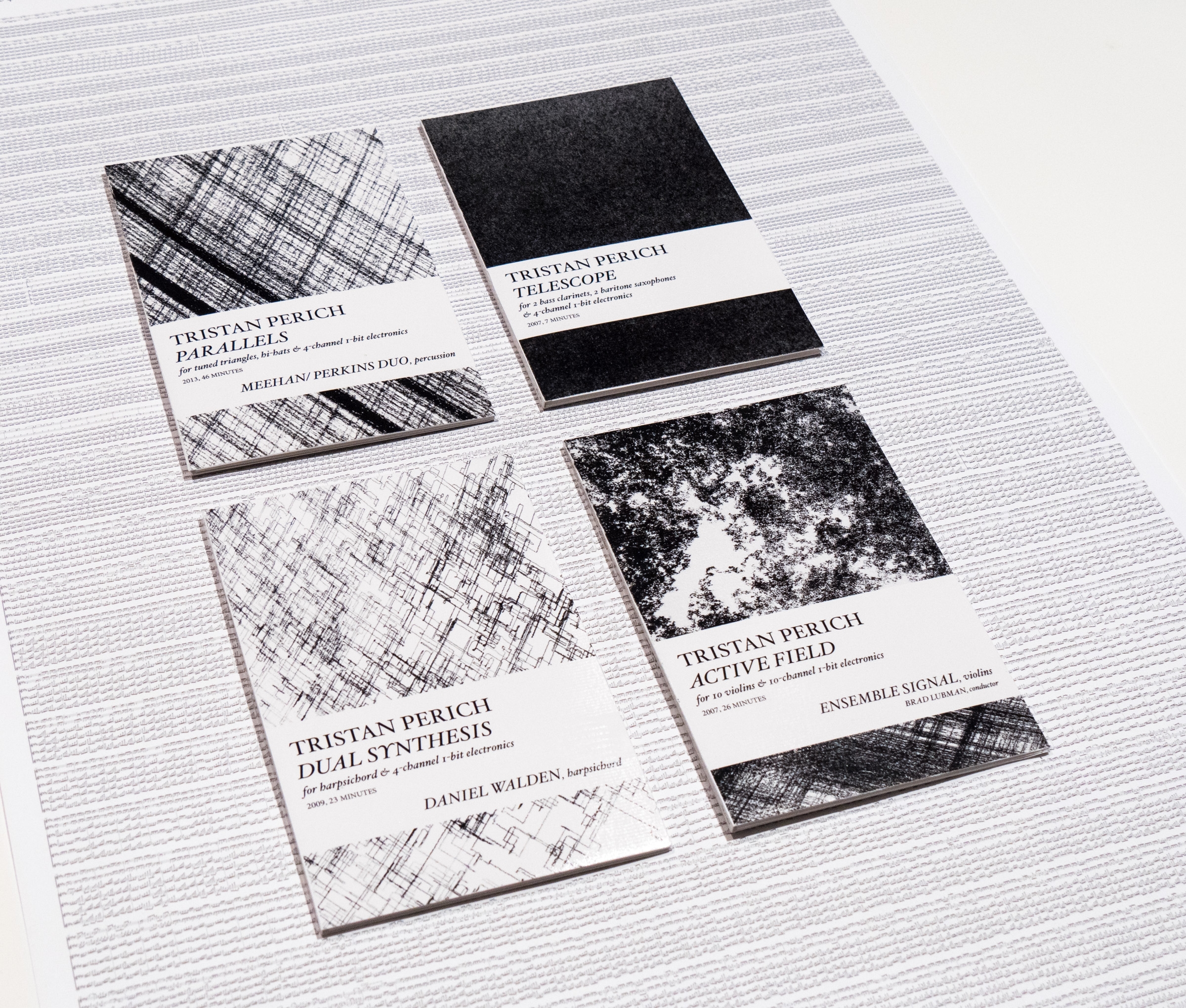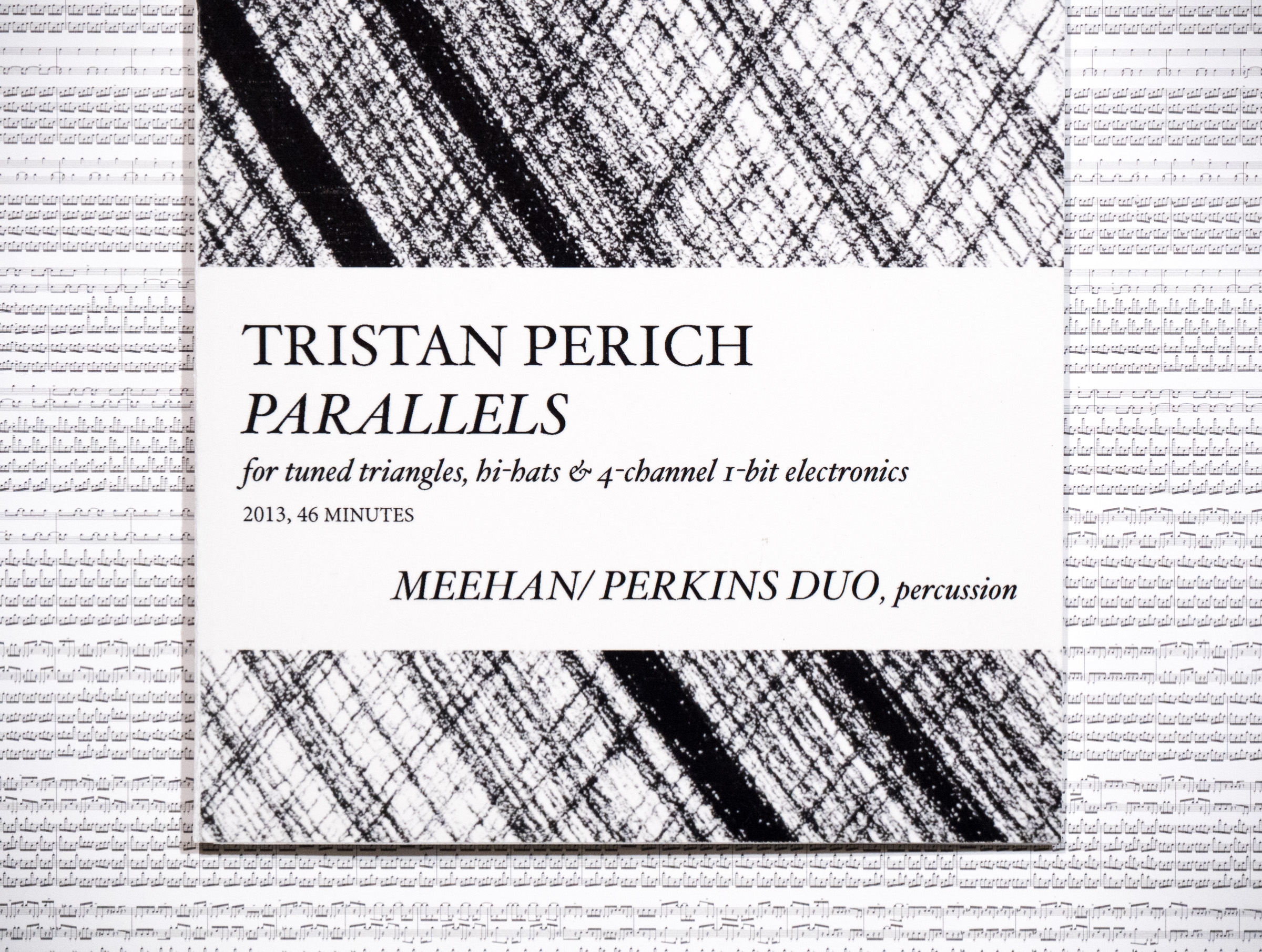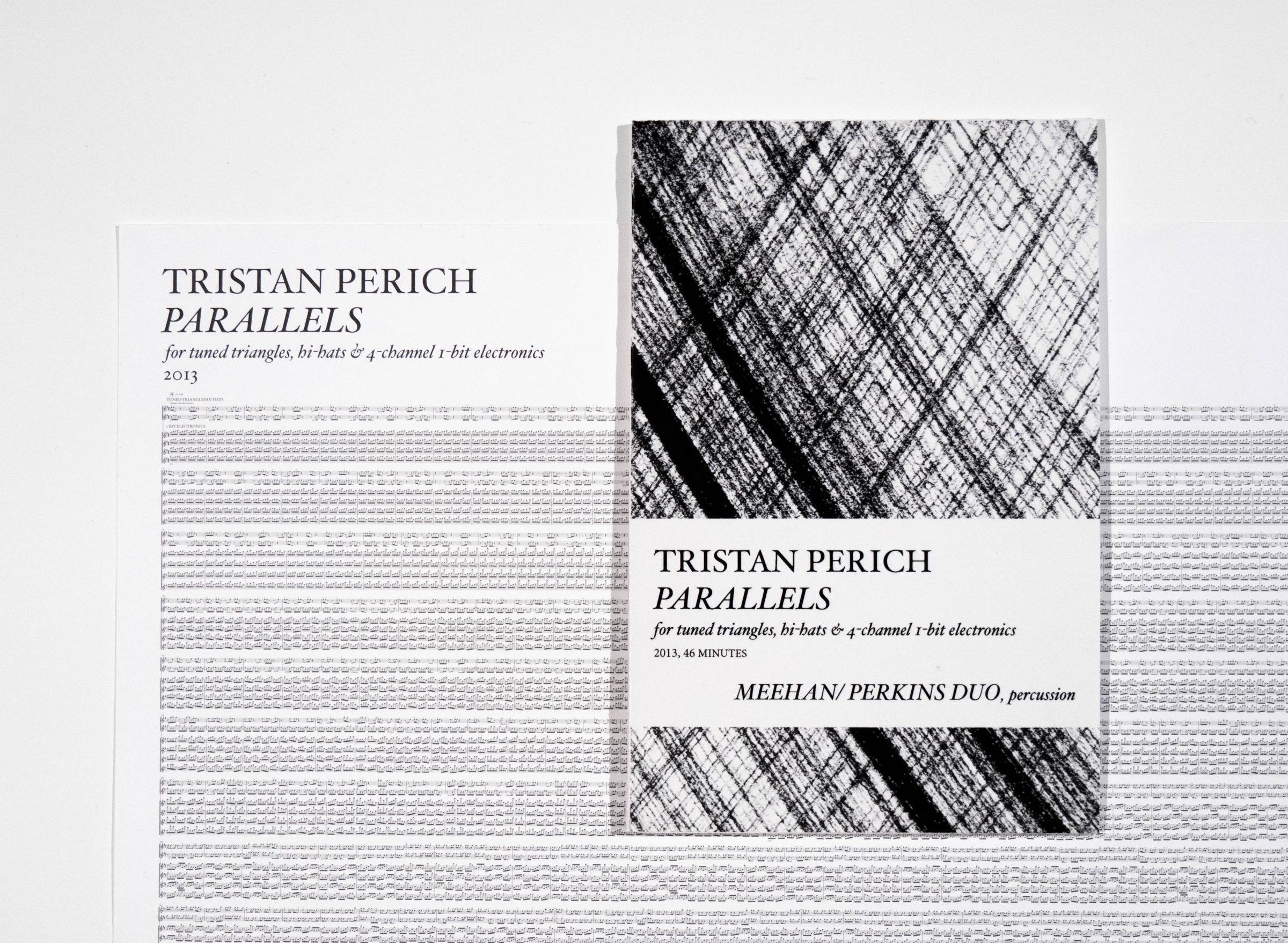 Tristan Perich's "Compositions," is a new series of recordings of his composed works for acoustic instrumentation with 1-bit electronics, released individually on CD in special packaging that includes their full musical scores printed in poster form. This year, four works will be released, scored as duos between percussion, winds, harpsichord, strings and his 1-bit electronics, featuring performances by Meehan/ Perkins Duo, Ensemble Signal, Daniel Walden and others.