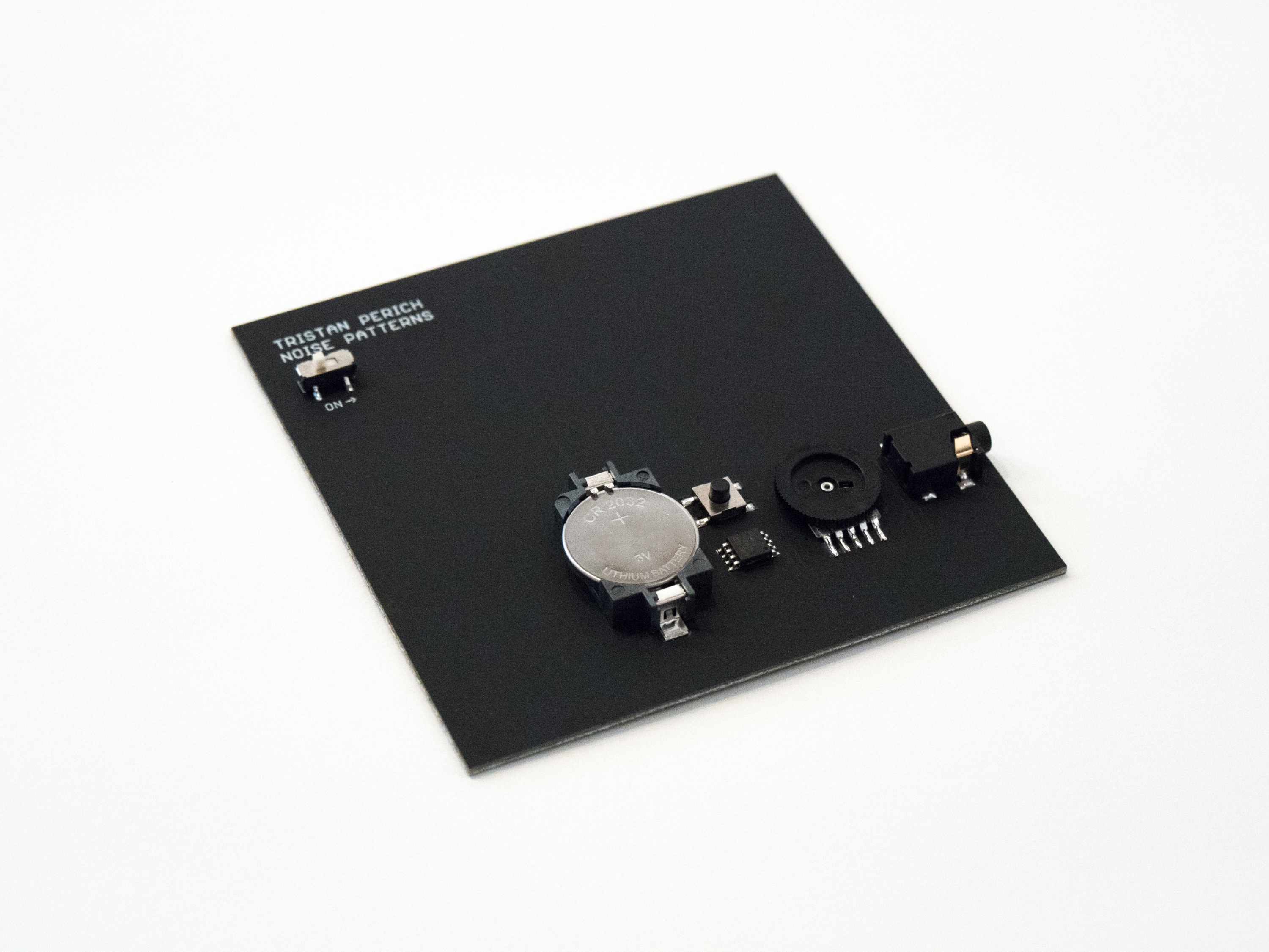 Noise Patterns digs into the primitive particles of digital 1-bit audio that has become Perich's signature sound. As with his previous circuit albums, Noise Patterns is not released as a CD or record. Noise Patterns comes as a minimalist matte-black circuit board with a headphone jack in the side. Plug in and switch it on to listen to Perich's music unfold. The 6-track album explores how digital noise can be shaped and stressed, from glittering static into the mesmerizing electronic thump of a nightclub. On a technical level, the sonic raw material in Noise Patterns is digital 1-bit noise: a probabilistic density of random oscillations that Perich sequences into rhythmic patterns and layers into textures, pulses, rumbles and beats. These sounds are Perich's very own, programmed by the artist and synthesized in real-time as the circuit plays. The physical format of Noise Patterns reveals how Perich engages music at all levels, from sound all the way down to the binary instructions of the hardware.